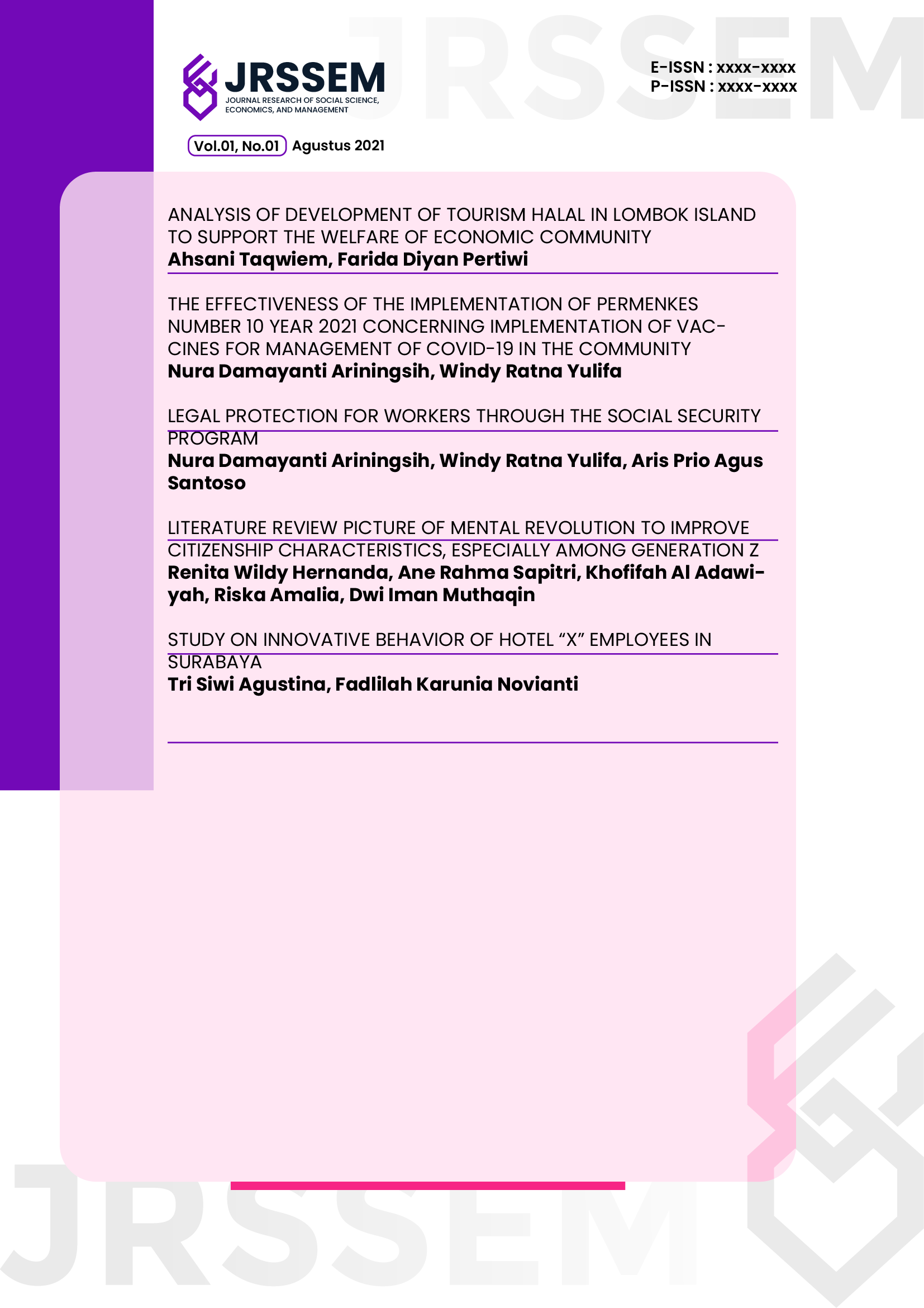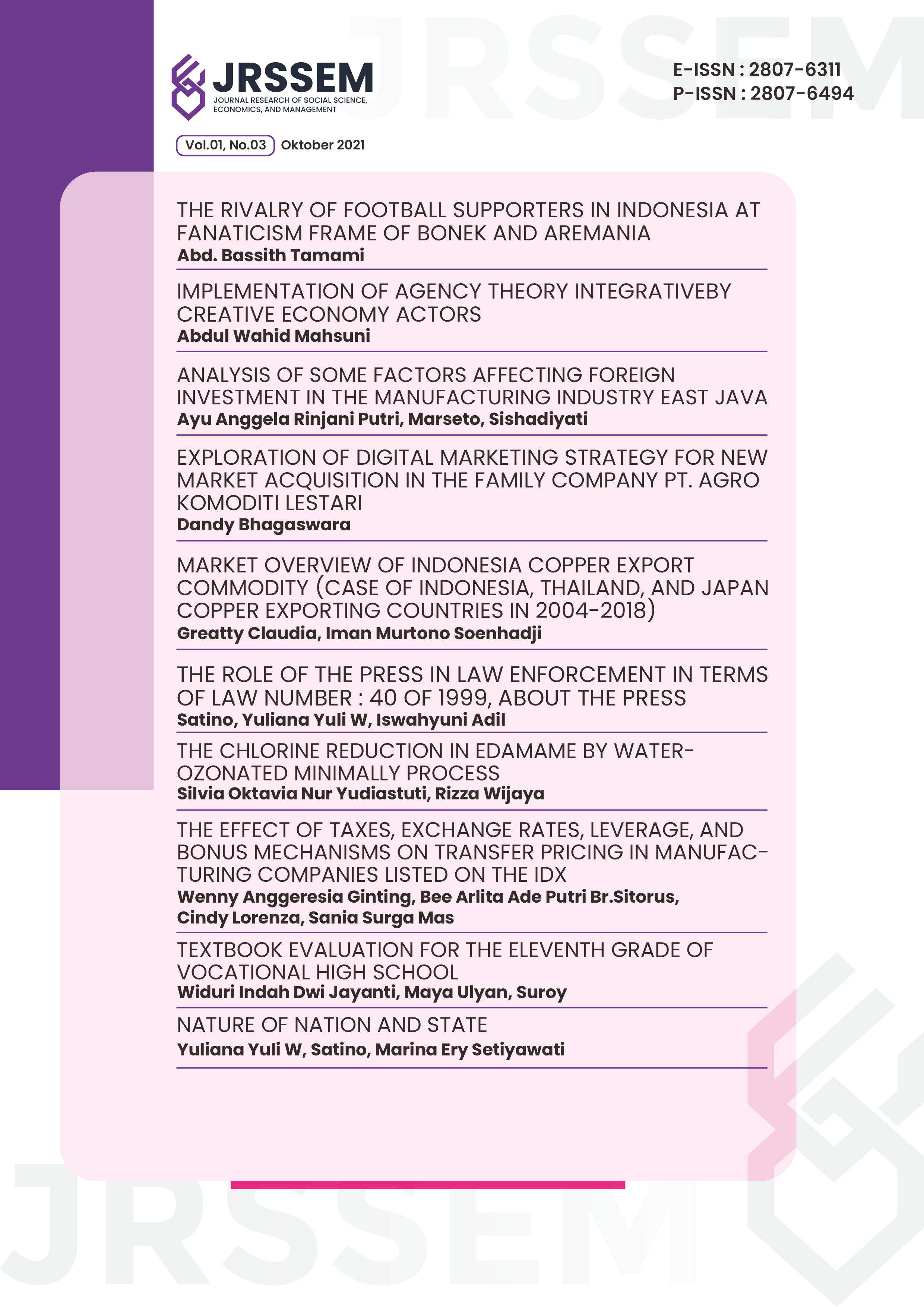 Vol. 1 No. 5 (2021)This issue has been available since December 15th, 2021. The articles were written by authors from Indonesia.